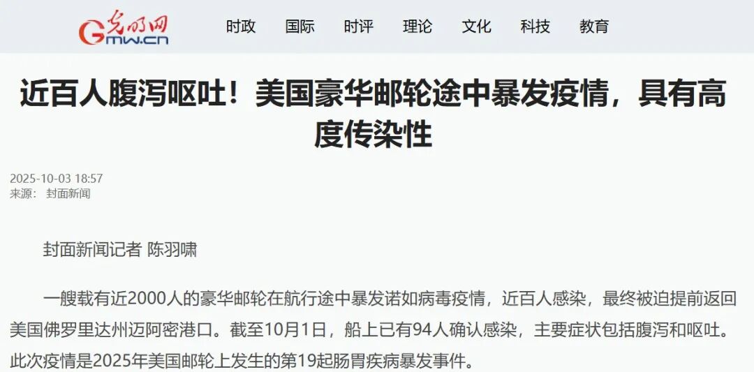刚刷到美国豪华邮轮 “海洋旋律号” 的新闻,直接让人对邮轮旅行产生阴影 —— 航行途中近百名乘客和船员突发腹泻、呕吐等消化道症状,最终邮轮被迫提前返航。更让人揪心的是,这不是个例,截至目前为止2025年美国邮轮已发生19起肠胃疾病暴发事件,14起都由诺如病毒引起,数量远超2024年全年。